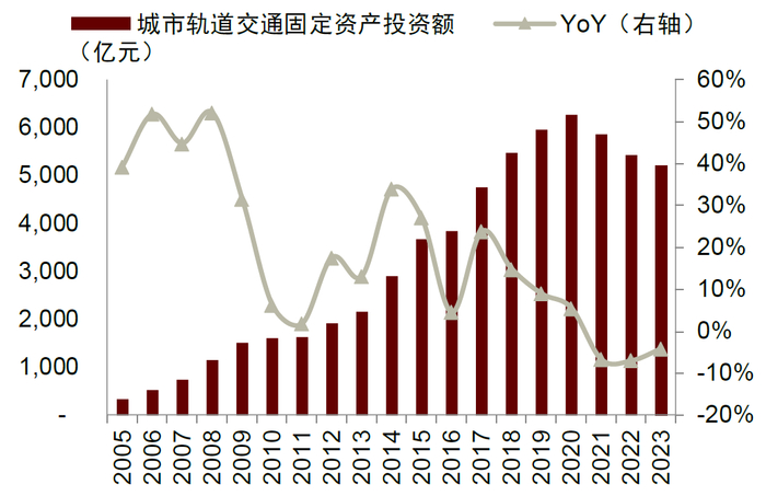 城轨新建仍有所承压,关注信号系统改造和维保需求释放趋势。一方面,我们关注到2023年我国城市轨道交通固定资产投资额仍在同比下降态势,同时我们计算城轨在建/新开工/竣工里程亦在下行,我们认为当前城轨新建方面仍有所承压,其中市域铁路或有结构性增长,关注后续在建里程完工进程及市域铁路增长趋势。另一方面,我们估计城轨信号系统使用寿命约15年,2010年前后我国城轨建设和投产进入高峰期,当前部分线路已逐步进入维修改造需求阶段。据中国城市轨道交通协会,截至1H24我国内地有58个城市投运城轨交通约11410公里,预计到2030年我国将有85条轨道交通线路进入信号改造周期,线路约2,500公里。我们认为城轨信号改造维保需求市场有望提升行业景气,关注后续进程。