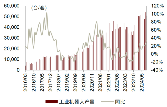 图表24:10月份机器人产量为50916台/套,同比增长33.4%