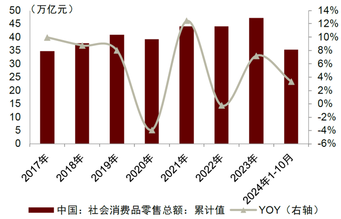 图表37:10月我国服装鞋帽/服装纺织类零售额同比+8.0%/+7.2%