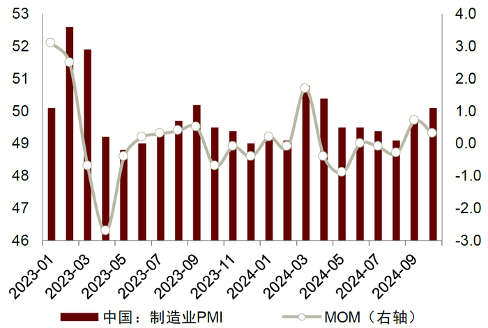 政策不断加码,基本面拐点值得期待。9月26日中共中央政治局会议对于经济工作部署进行了重点强调,提出加大宏观调控力度,发行使用好超长期特别国债和地方政府专项债;10月13日国新办举行新闻发布会,表示中央财政仍有较大赤字空间,并提出加大力度化解地方政府债务风险,我们认为财政政策是提振当下制造业投资信心的重要举措,我们预计内需首先在情绪与投资信心上出现拐点,关注机床链、仪器仪表、工业气体和检测服务。
