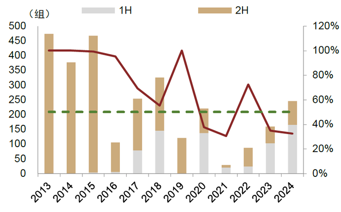 图表12:铁路动车组采购量上下半年情况(YTD)