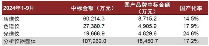 设备更新政策驱动基本面边际回暖,国产替代长坡后雪。根据公开招标信息统计,整体看,招标数据反映今年以来基本面较弱,但1)近期据下游反馈,行业需求受到设备更新政策影响有所恢复,教育口受到直接资金支持更新老龄化设备,企业端伴随经济预期改善下单积极性也有提升;2)国产替代趋势延续、贸易逆差持续缩窄,2024年1-9月通用电子测量仪器/分析仪器贸易逆差同比-26%/-30%。我们认为,国产企业仍处成长早期,密切关注后续相关政策催化与高端产品突破带来的向上信号。