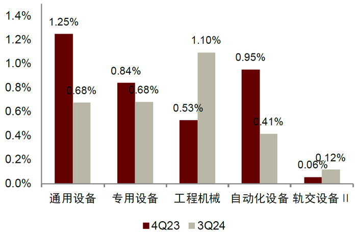 图表7:机械设备子板块基金3Q24与4Q23重仓持股比例情况