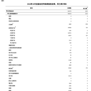 国家疾病预防控制局公布2024年10月全国法定传染病疫情概况