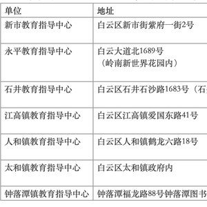 (四)江高镇教育指导中心:广州市白云区江村小学、广州市白云区江高镇中心小学。