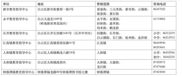 与此同时,白云区教育局向社会公布了招生工作咨询电话,供广大家长来电咨询,具体如下: