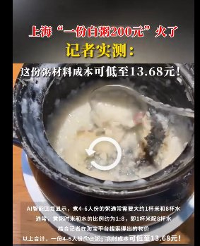 该店长介绍,这款白粥并非店内主推菜品,“初衷不是卖给大众消费的,是老板做过给朋友他们觉得好吃,就弄到菜单上了,十几年前就是这个价格了”。 此外,他认为嫌贵的“都不是我们终极顾客”。