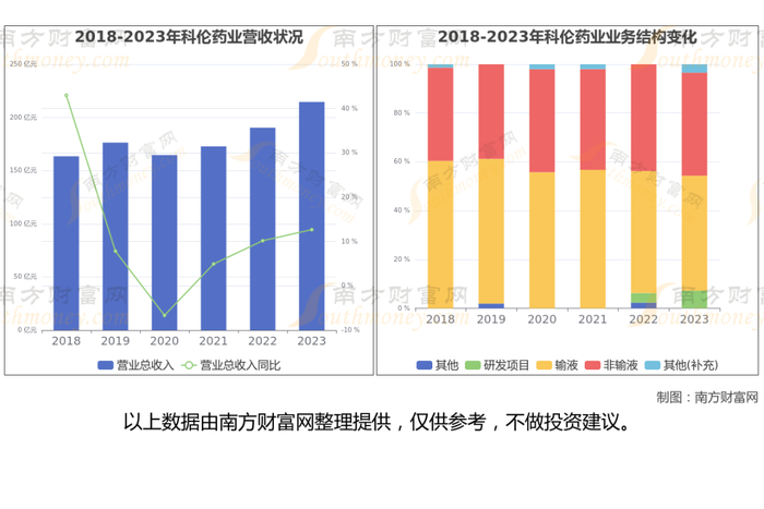 科伦药业于2010年6月3日在深圳证券交易所上市,公司主营业务为大容量注射剂(输液)、小容量注射剂(水针)、注射用无菌粉针(含分装粉针及冻干粉针)、片剂、胶囊剂、颗粒剂、口服液、腹膜透析液等25种剂型药品及抗生素中间体、原料药、医药包材等产品的研发、生产和销售。