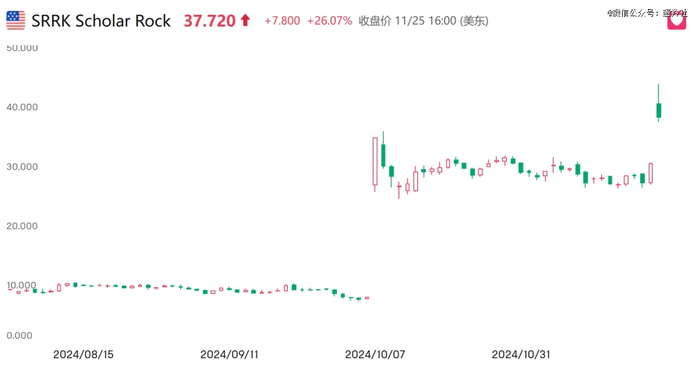 SRRK的主打产品apitegromab(SRK015)不仅两个月前SMA达到临床终点,股价直接翻了3.6倍,并且还有着下一代更加优质,亲和力更高的单抗——SRK439在准备IND。