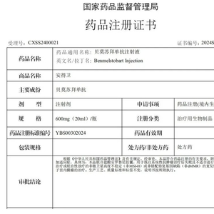 11 月 27 日,正大天晴宣布,贝莫苏拜单抗在国内获批新适应症,联合盐酸安罗替尼胶囊用于治疗既往接受过一、二线化疗方案治疗失败或不能耐受的非微卫星高度不稳定(非 MSI-H)或非 DNA 错配修复缺陷(非 dMMR)的复发性或转移性子宫内膜癌(CXSS2400021)。