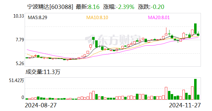 《财中社》注意到,宁波精达的经营稳健,营收和净利润持续增长。根据最新财报,公司前三季度实现营业收入5.82亿元,同比增长14.81%;实现归母净利润1.19亿元,同比增长1.66%。长线来看,自2017年开始,公司营收和净利润均呈现双增长态势。此外,公司毛利率和净利率也保持在行业前列,尽管受到外汇市场波动等因素影响,公司整体经营质量依然稳定。