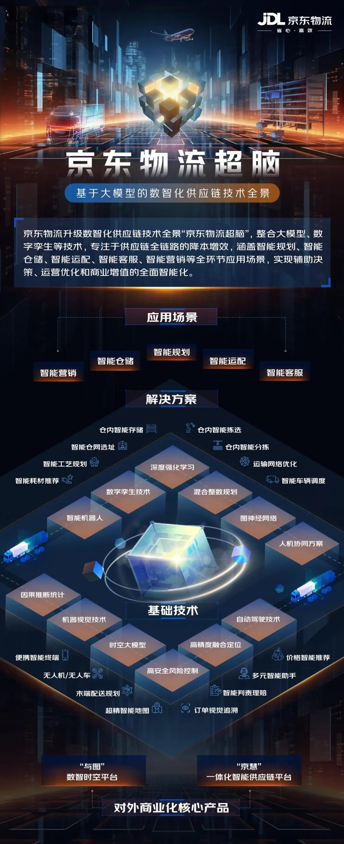 近日,京东物流全面升级基于大模型的数智化供应链技术全景“京东物流超脑”,将AI、大数据、运筹学等数智化技术与物流各环节深度融合,聚焦从智能规划到智能仓储与运配,再到智能客服与营销的全链路降本增效,实现辅助决策、运营优化和商业增值。