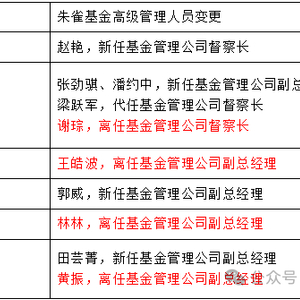 2023年以来,朱雀基金高级管理人员人事变动情况