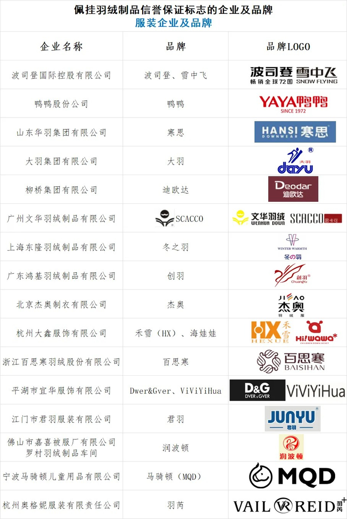 栏目中出现的仿制“羽绒制品信誉保证标志”,其“真身”是协会1995年注册的证明商标,经过企业资质、产品品质和售后服务等审查合格的品牌可获得授权使用。该商标直饱受仿制和冒用的侵扰,为正本清源,协会现将授权使用的品牌名录和查询方式予以重新发布(见附件),旨在为执法机关提供商标侵权判定依据,也为消费者安心选购羽绒制品提供参考。