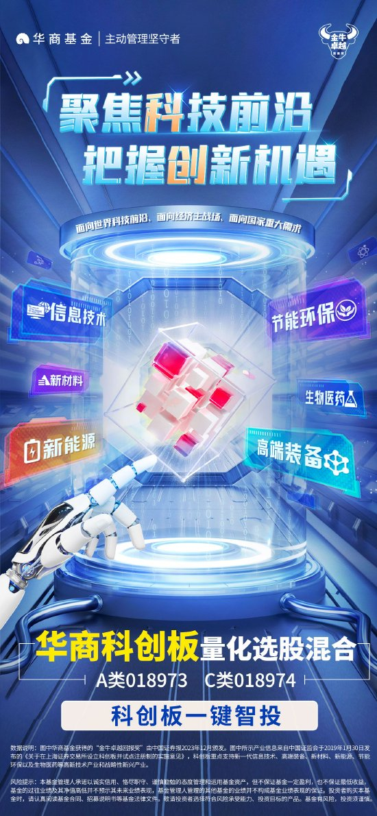 华商科创板量化选股混合基金经理艾定飞:长期看好科技板块的发展前景,尤其是与国家政策和全球地位提升相关的硬核科技板块,如软件、硬件、半导体等。此外,选股方面,将使用量化多因子选股模型对股票池进行映射分析、排序和收益预测;然后通过最大化风险收益比的组合进一步优化标的权重。