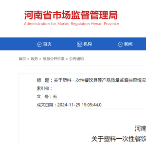 近期,河南省市场监督管理局组织开展了塑料一次性餐饮具等产品质量监督抽查。现将抽查情况通报如下: