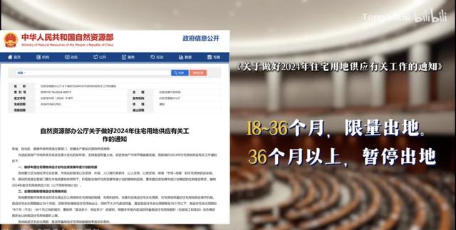 4月29日,自然资源部发布了一个关于做好2024年住宅用地供应有关工作的通知。核心有两件事——一个是商品住宅去化周期18到36个月之间的城市,要按照“盘活多少、供应多少“的原则出让住宅用地。另一个是去化周期在36个月以上的城市,暂停新增商品住宅用地出让。