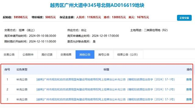 悄咪咪地,原定于11月24日出让的广州大道中345号北侧AD016619地块,又延迟出让了。满打满算,这已经是第三次延迟了。