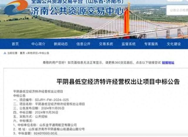 最近有媒体报道说,山东省平阴县以9.24亿元出让了该县低空经济30年特许经营权,特许经营者在特许经营期内,负责低空经济的运营和维护,提供飞行执照驾培等服务。