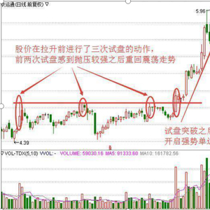 因此当天最常见的走势为冲高回落。若试盘时股价涨幅较小,成交量温和放量,则后市开启拉升行情的概率较大,如果试盘时股价彻底翻绿,且成交量出现异常倍量,则意味着短期内主力资金不会发起上攻,维持震荡走势。