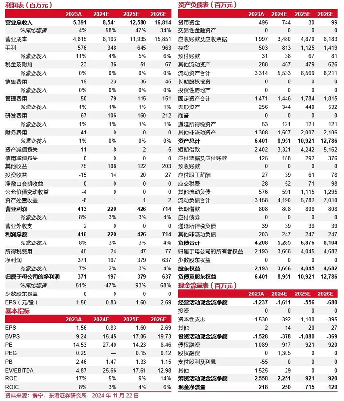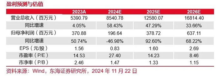 投资建议:公司光伏边框龙头地位稳固,布局再生铝降低原材料成本,扩充产能推动市场份额提升,拓展海外市场获取高毛利,预计公司2024-2026年实现营业收入85.41/125.80/168.14亿元,实现归母净利润1.97/3.79/6.37亿元,对应P/E27.40/14.23/8.46倍,首次覆盖,给予“买入”评级。