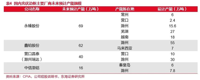 越南基地辐射海外市场,有望实现盈利结构优化。公司在越南投资新建18万吨光伏边框生产基地,辐射美国、印度市场。越南基地的先进制造产能在东南亚地区极具成本优势,并且拥有从挤压、立式氧化到精加工的产业工序,可留存各工序加工利润。相较于国内,越南出口更低的关税以及海外地区更高的加工费有望为公司带来更高利润,改善公司盈利结构。