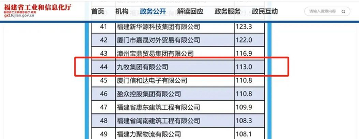 接着我们再看,福建省工商联发布的《2024年福建省民营企业100强榜单》显示,九牧集团以113亿元营收位列第44位。而在2023年的这份榜单中,其营收数据为106.9亿元。