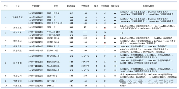 商业SAR发射信息统计表
