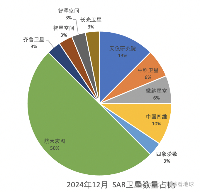 2024年12月底,将会有10家公司,运营共31颗商业SAR卫星。其中:航天宏图16颗,天仪研究院4颗,中国四维3颗,微纳卫星2颗,中科卫星2颗,齐鲁卫星1颗,智星空间1颗,智晖空间1颗,四象爱数1颗,长光卫星1颗。