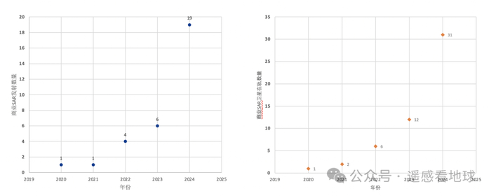 2024年发射数据高达19颗,超过历年(2020年之后)发射的总和。2025年,在轨SAR卫星将超过30颗,商业SAR数据将迎来爆发。