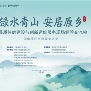 11月26日,由中国房地产业协会主办的“高品质住房建设与创新运维服务现场经验交流会(保障性住房建设安吉站) ”在“绿水青山就是金山银山”理念诞生地浙江安吉召开。
