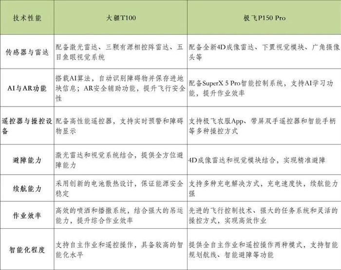 所以说大疆T100和极飞P150 Pro在硬件配套和技术性能方面各有优势,用户应根据自己的实际需求和预算进行选择。
