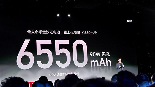 续航暴增40%!REDMI K80搭载6550mAh最大小米金沙江电池
