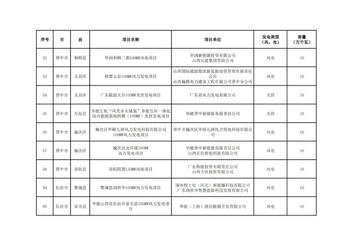国家电投、华能、华电、中国电建等100个项目纳入山西10.47GW保障性风、光项目清单
