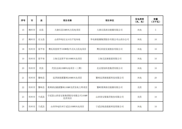 关于山西省2024年竞争性配置风电、光伏发电项目评审结果的公示