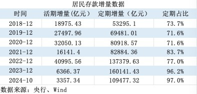 活期存款去哪了?10月末定期存款占比达73.9% 创出历史新高