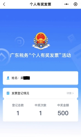 个人消费者取得符合条件的普通发票,可通过“粤税通”小程序直接参与即时开奖。