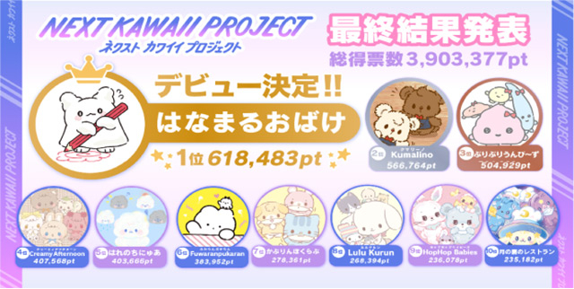 第一名获胜的角色将作为三丽鸥新角色正式出道,并进行商品化。