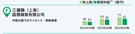 其商品销售主要受到入境游客的增长带动,店铺、批发等各销路的消费人数增加,带动了增长。Hello Kitty50周年企划仍在推出,其他人气角色商品同样热销。此外,随着角色大赏等活动的举办,国内消费人数也在增长。