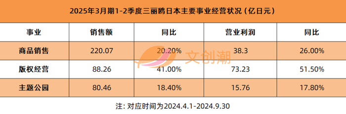目前,三丽鸥业务主要分为商品销售、版权事业、主题公园以及包括教育、数字等在内的新事业这四大板块。