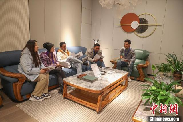 11月27日,参加2024洋网红“Talk and Show江西”之赣南行活动的10余位“洋网红”来到被誉为“中国实木家居之都”的江西赣州南康区,先后参观了赣州国际陆港、南康区家具新中心、南康家居小镇等地,深入了解南康区这座小城实现千亿年产值的家具大产业背后的故事。家具产业是赣州市南康区的传统优势产业、首位产业,拥有三十多年的发展历史,如今已是赣州市最具特色、规模最大的产业集群,主营业务年收入超2700亿元,品牌价值超700亿元。图为“洋网红”们在南康区家具新中心体验南康家具。中新社记者 刘力鑫 摄