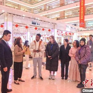 11月27日,参加2024洋网红“Talk and Show江西”之赣南行活动的10余位“洋网红”来到被誉为“中国实木家居之都”的江西赣州南康区,先后参观了赣州国际陆港、南康区家具新中心、南康家居小镇等地,深入了解南康区这座小城实现千亿年产值的家具大产业背后的故事。家具产业是赣州市南康区的传统优势产业、首位产业,拥有三十多年的发展历史,如今已是赣州市最具特色、规模最大的产业集群,主营业务年收入超2700亿元,品牌价值超700亿元。图为“洋网红”们在南康区家具新中心参观。中新社记者 刘力鑫 摄