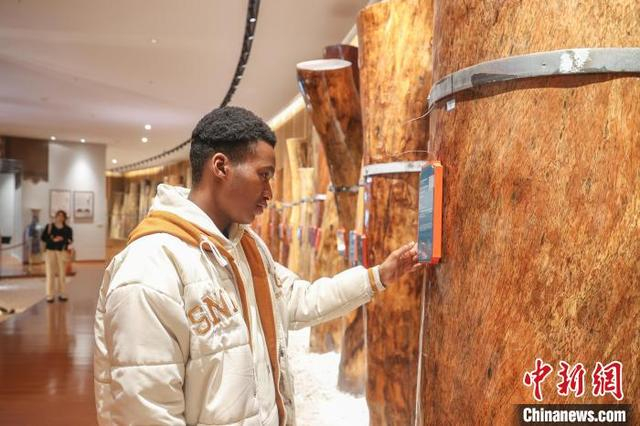 11月27日,参加2024洋网红“Talk and Show江西”之赣南行活动的10余位“洋网红”来到被誉为“中国实木家居之都”的江西赣州南康区,先后参观了赣州国际陆港、南康区家具新中心、南康家居小镇等地,深入了解南康区这座小城实现千亿年产值的家具大产业背后的故事。家具产业是赣州市南康区的传统优势产业、首位产业,拥有三十多年的发展历史,如今已是赣州市最具特色、规模最大的产业集群,主营业务年收入超2700亿元,品牌价值超700亿元。图为“洋网红”在南康家居小镇的家具博览中心参观。中新社记者 刘力鑫 摄