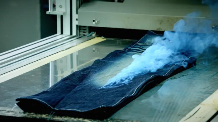 镭射技术的应用被认为是牛仔裤行业的革命性进步。有了镭射机后,牛仔服装可以按照电脑设计的图案,用激光烧出猫须、手擦、磨烂、扎花、破洞、磨边等手工效果。不仅节省了人工,更是减少了水和化工制剂的使用。