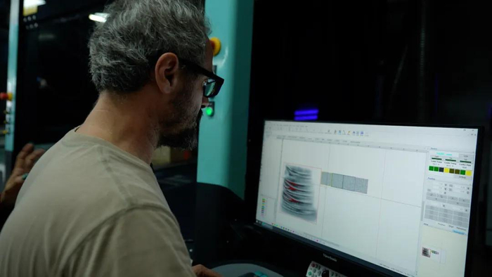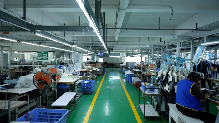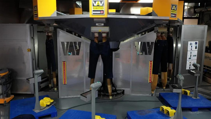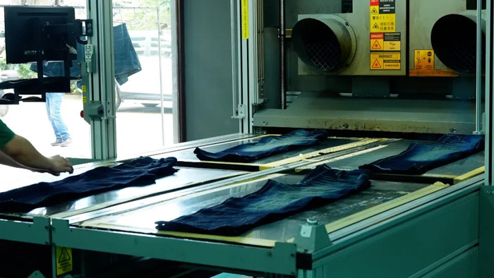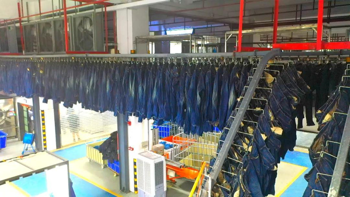 2021年,廖忠伟添置了成套的环保节能洗水设备,包括镭射机、机器人喷PP机、免石洗水机、臭氧机等等,将传统牛仔服制造车间改造为智能化的环保洗水车间。