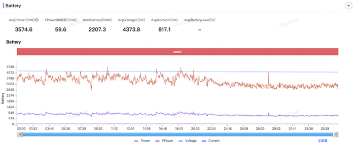 这段游戏过程中手机的平均功耗为3.5W,非常省电。