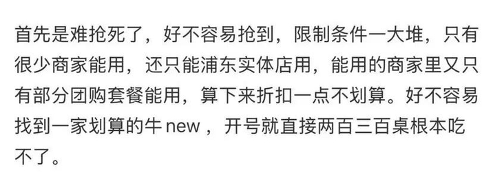 网友“没有发疯”在社交平台上也吐槽,“消费券难抢,限制条件又多,算下来一点不划算”。