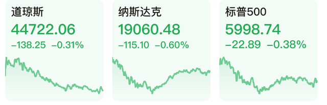 大型科技股多数下跌。英伟达、微软、特斯拉、亚马逊跌超1%,苹果、Meta小幅下跌。