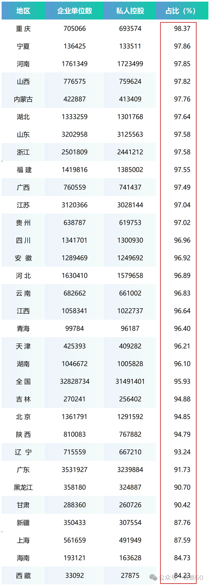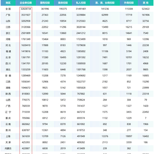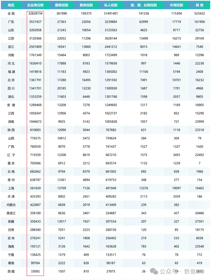 表:31省市企业单位数量排名(按企业单位总数量排名)