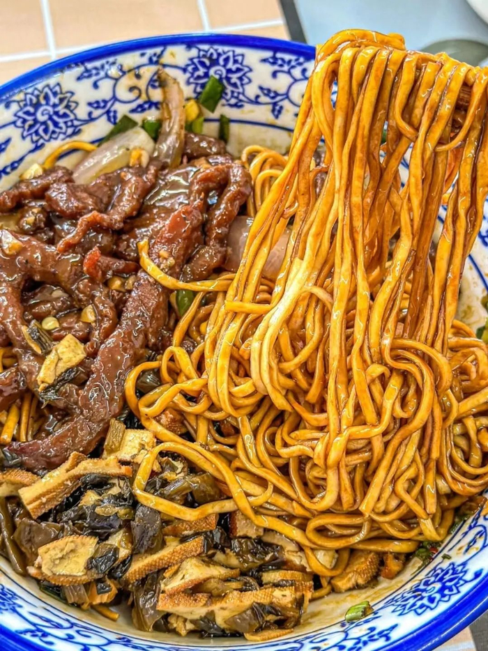 🔸来长兴不可错过干挑面。细细的圆面裹满酱汁,干而不坨,滑而不腻,满满的猪油香扑鼻而来。浇头种类特别多,推荐肉圆和素鸡。